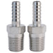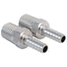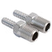 Stainless steel barb adapter for 1/4" female pipe thread connections, designed for use with 3/16" or 1/4" ID tubing, pack of 2.