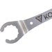 The Komos shank wrench is specifically designed to tighten the nut on the back of a faucet shank, featuring a double offset for clearance inside coffin boxes and larger round towers, laser cut from 12 gauge 304 stainless steel.
